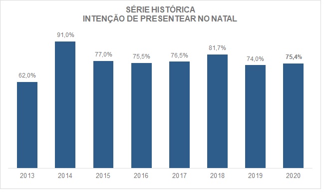 Observa-se que o distanciamento social forçado dos últimos meses fará com que as pessoas aumentem o valor dos presentes. Tanto que o tíquete médio terá um salto de 44%, ao passar de R$ 285,00 no ano passado para R$ 410,63. Ao que tudo indica, este será o Natal da compensação, já que muitas famílias não vão gastar em viagens e a ceia terá menos convidados, a tendência é caprichar nos presentes.